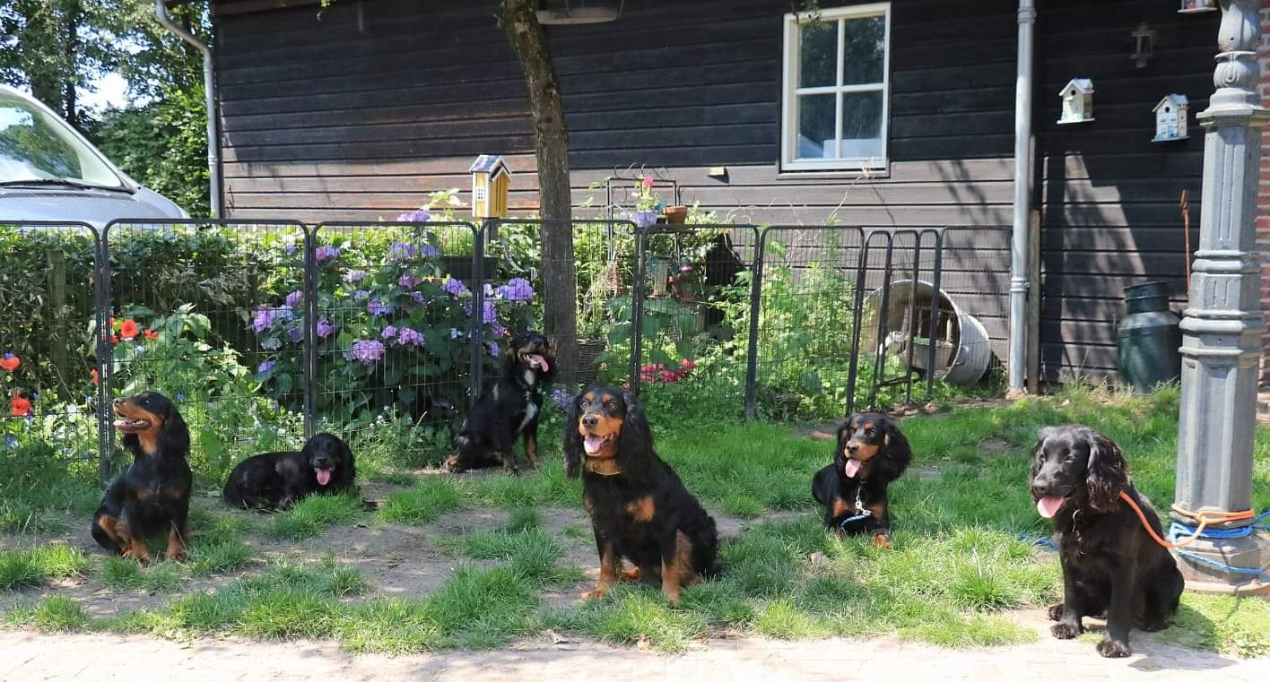 Ein schönes Zusammentreffen beim Certificatstag in Vragender 3.09.2022. Bantus Nachwuchs aus beiden Würfen. Flame, Chops, Zip, Olaf und Brittje.