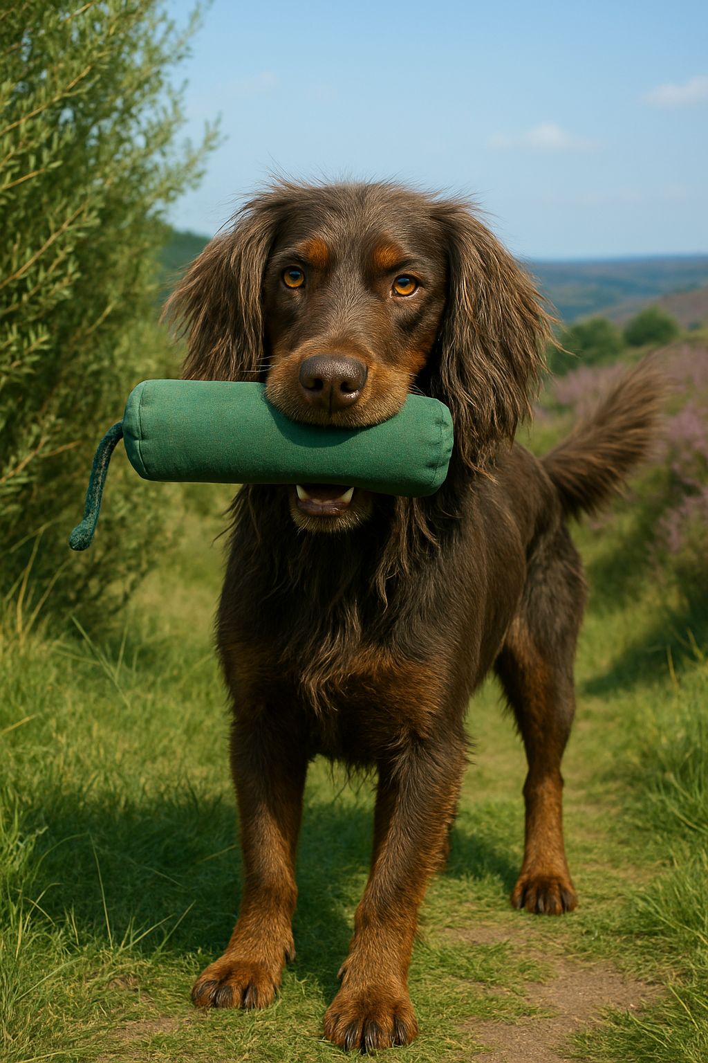 Faye wird jagdlich ausgebildet und in 2 Jahren, wenn alle DNA Tests zur Zufriedenheit abgeschlossen sind, geht sie in die Zucht.