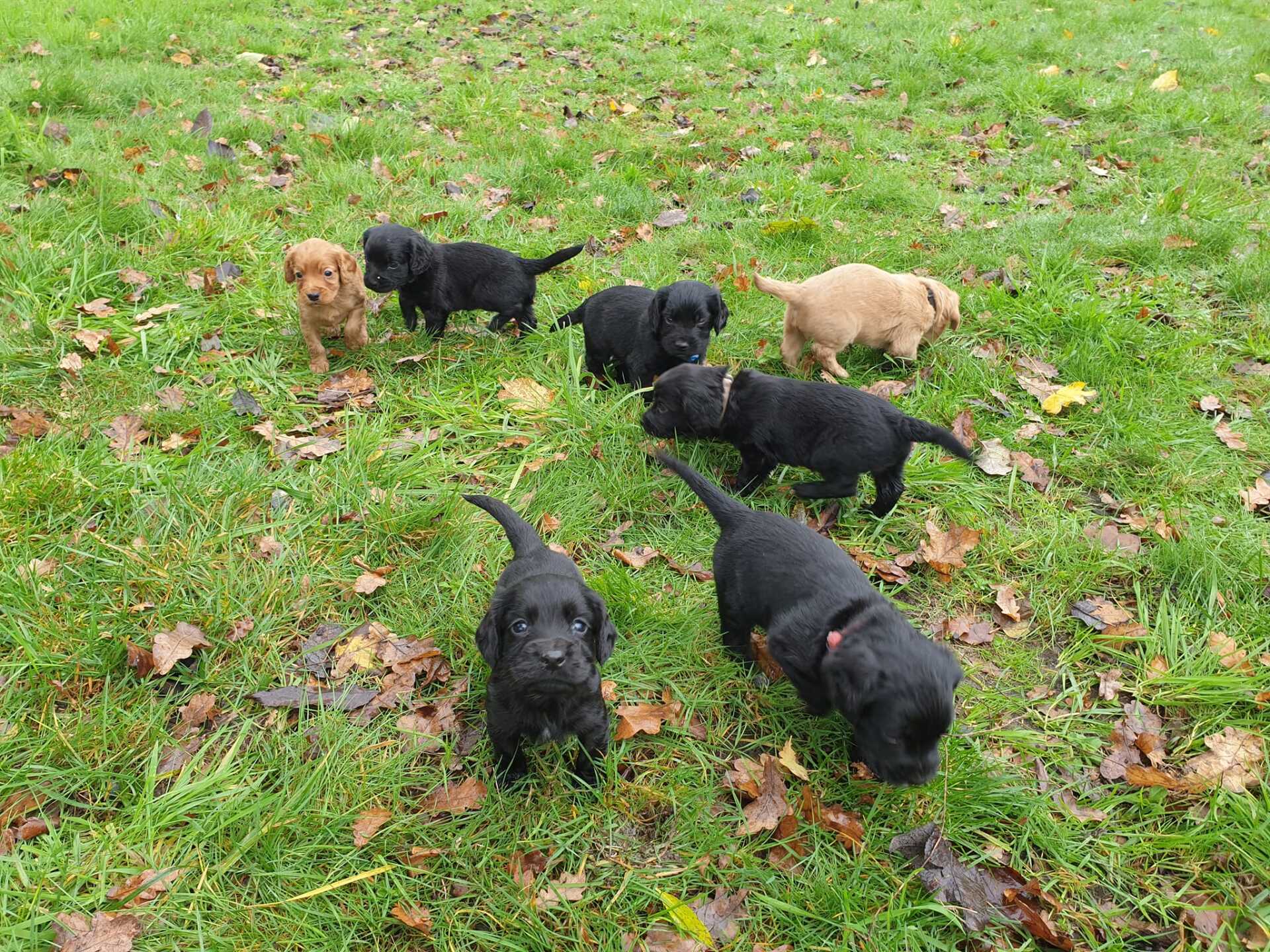 4 schwarze Hündinnen, 2 schwarze + 2 rote Rüden.