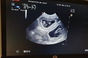 - Ultraschall, 30 Tage nach der Deckung. Es wurden 7-8 Welpen gesichtet.